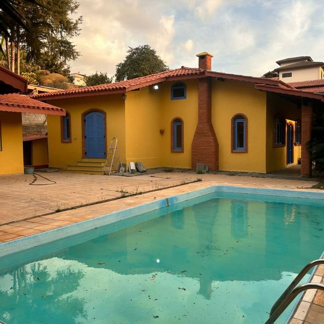 Casa principal: 4 dormitórios (2 suítes) dessas duas suítes, uma delas está com marcenaria de sala de tv